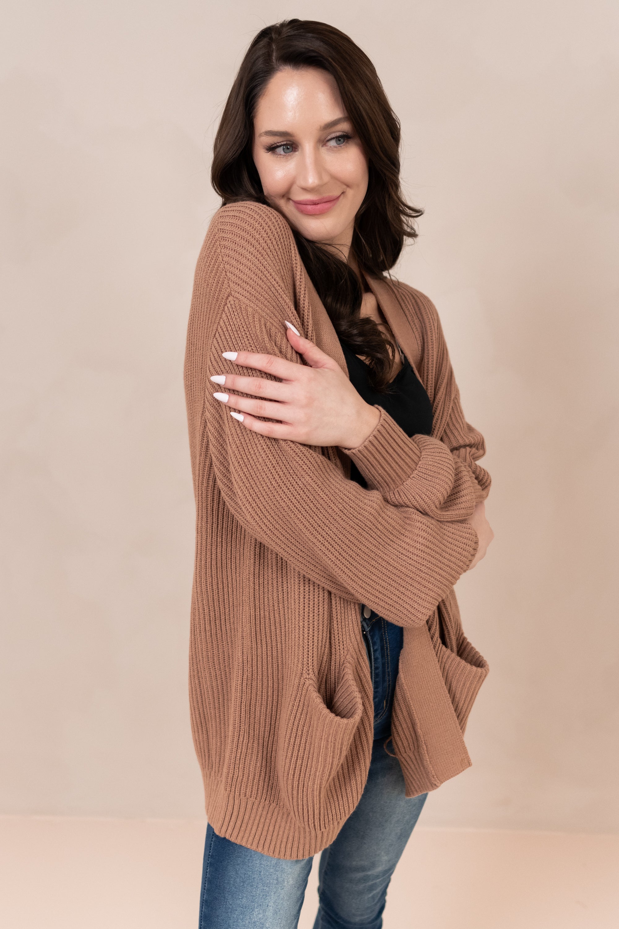 Chunky Knit Women's Oversized Cardigan in Latte