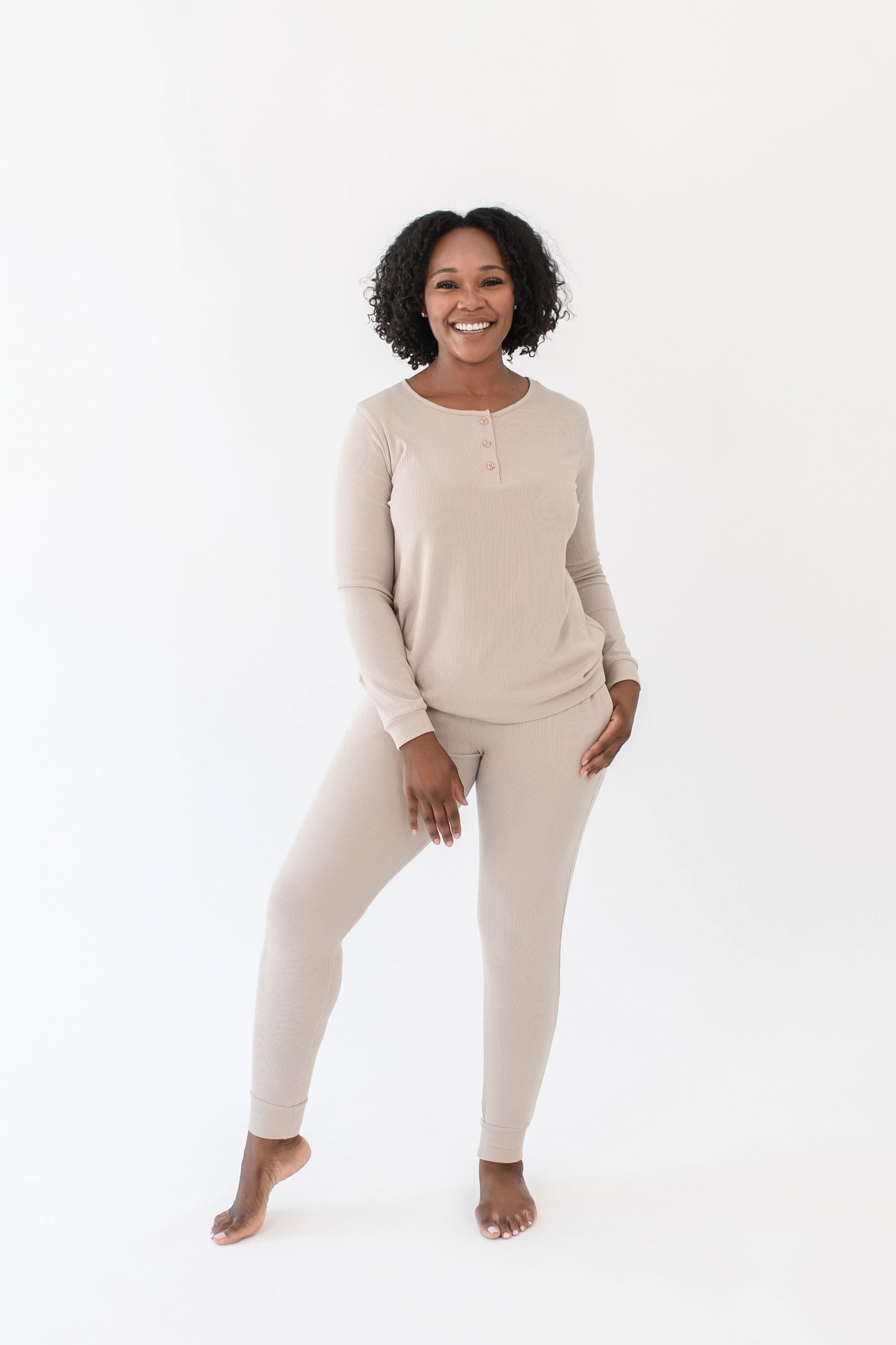 Women’s Ribbed Henley Set in Burgundy Stripe