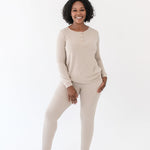 Chilly nights just got cozier with this ribbed set designed for lounging, sleeping, and everything in between. Crafted from a cloud soft bamboo fabric that’s ribbed for plush texture, this set includes a long sleeve henley top and jogger style bottoms. The stretchy, breathable fabric regulates your temperature to keep you perfectly cozy but never too hot. Cuffing at the wrist and ankles keeps the warmth in and prevents fabric from riding up while you move and sleep. Wear the top as a soft base layer under a jacket, or wear it as a set for unbeatable comfort around the house.