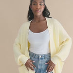 Cozy, redefined. Crafted from a chunky bamboo knit with a uniquely plush feel, this oversized cardigan is so comfortable, you’ll almost wish for a perpetual winter. Lantern sleeves and dropped shoulders leave plenty of room for easy movement, while maintaining a put-together look. The open, slouchy design makes you feel like you’re curled up on your couch and wrapped up in your favorite knit blanket.