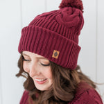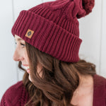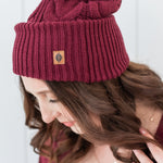 Cable Knit Pom Beanie in Burgundy