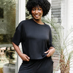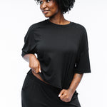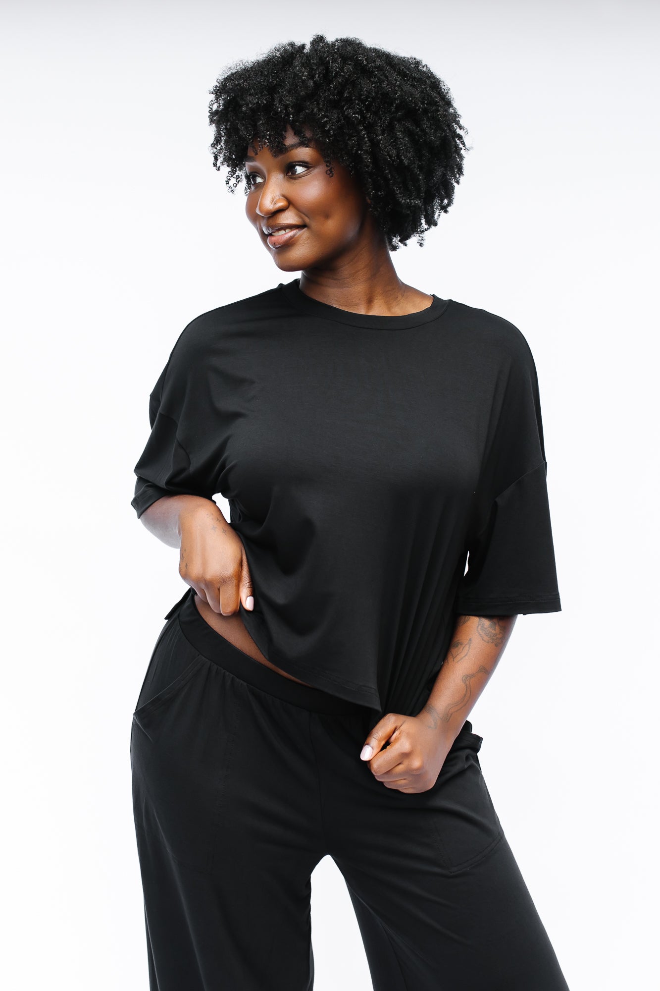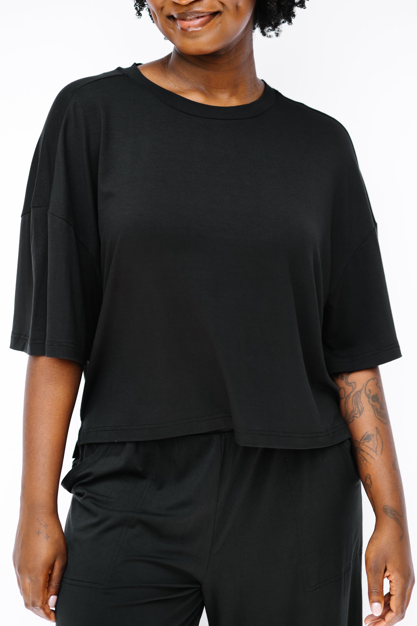 Meet the it-girl of your wardrobe: a relaxed, ultra soft, ultra comfy tee that’s as cool as you are. Say goodbye to tight, restrictive clothing, and slip on this buttery top made from stretchy bamboo fabric. Moisture-wicking fibers regulate your temperature so you’re always comfortably warm and never too hot, while the loose fit makes it extra easy to relax. Slightly cropped for a stylish look that’s never frumpy, this tee is just as wearable out as it is in bed.